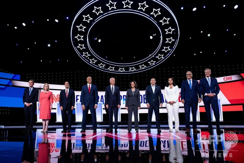 【8月1日 AFP】2020年米大統領選に向けた野党・民主党の第2回公開討論会は、2日目の7月31日、世論調査で支持率トップのジョー・バイデン(Joe Biden)前副大統領(76)が登壇し、医療保険制度などをめぐって他候補らと論戦を交わした。
