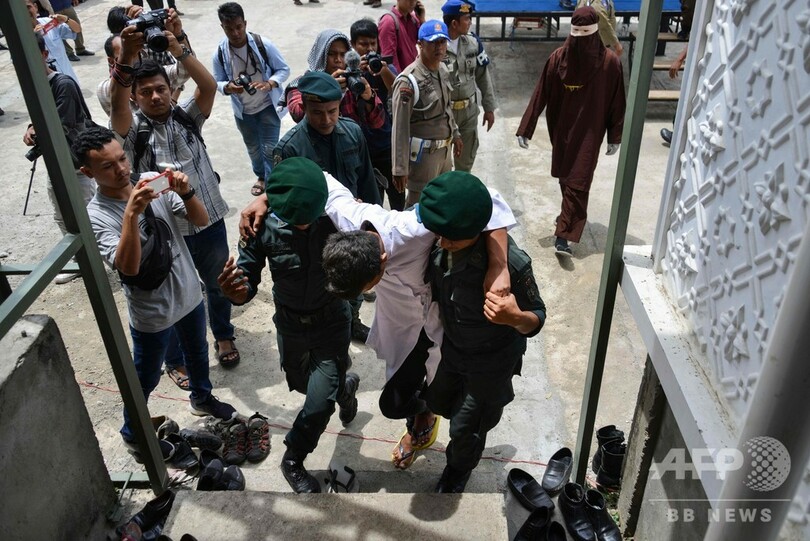 【8月1日 AFP】インドネシア・アチェ(Aceh)州で1日、地元で施行されているシャリア(イスラム法)に違反したとされる男女計11人に対し、公開むち打ち刑が執行された。うち1人は仏教徒だった。中には慈悲を乞うたり、こらえきれずに泣いたりする受刑者もいた。