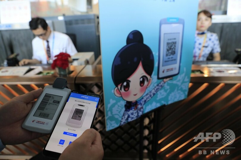 今後、電子タグ使用可能なフライトでは、旅客が東方航空アプリでチェックインや手荷物の預けが全て自動的にでき、安全検査を通過するまで一枚の紙も必要なく、人手による手続きが全くないという状況が実現すると予想される。(c)CNS/JCM/AFPBB News