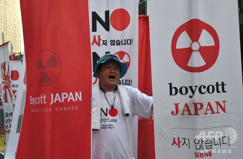 【8月3日 AFP】韓国の首都ソウルにある日本大使館そばで1日、輸出管理の優遇措置を適用するいわゆる「ホワイト国」から韓国を除外する決定をした日本政府を非難する集会が開催された。