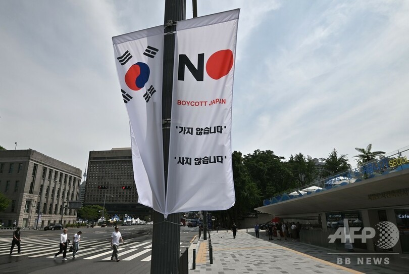 【8月6日 AFP】日本との貿易摩擦が激化している韓国の首都ソウルの中心部で6日、「ノー・ジャパン」を示す反日旗1000枚以上の設置が始まった。しかしこれには非難が殺到し、数時間後には旗の撤去を余儀なくされた。