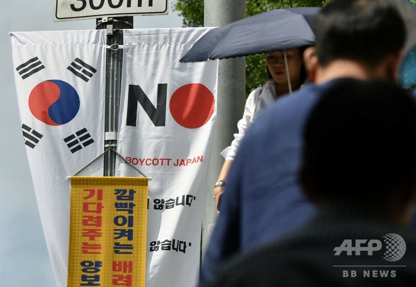 【8月6日 AFP】日本との貿易摩擦が激化している韓国の首都ソウルの中心部で6日、「ノー・ジャパン」を示す反日旗1000枚以上の設置が始まった。しかしこれには非難が殺到し、数時間後には旗の撤去を余儀なくされた。