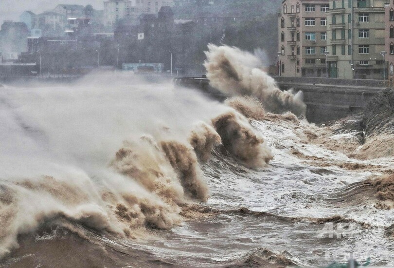 また国営新華社(Xinhua)通信によると、台風9号は10日午前、最大風速51メートルの勢力で温嶺(Wenling)市に上陸。東部沿岸を上海に向かって進む見通しだという。(c)AFP