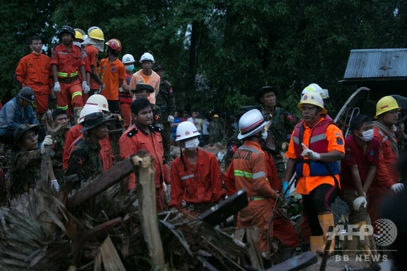 ミャンマーなどの東南アジア諸国では毎年、季節風による豪雨が家屋の浸水や土砂災害を引き起こし、何千人もの住民が避難を余儀なくされている。ただ、同州のパウン(Paung)町で9日に発生した土砂災害は、このところでは最も壊滅的で、数百人規模の災害対応要員が、泥にまみれたがれきの中から遺体の収容を続けている。