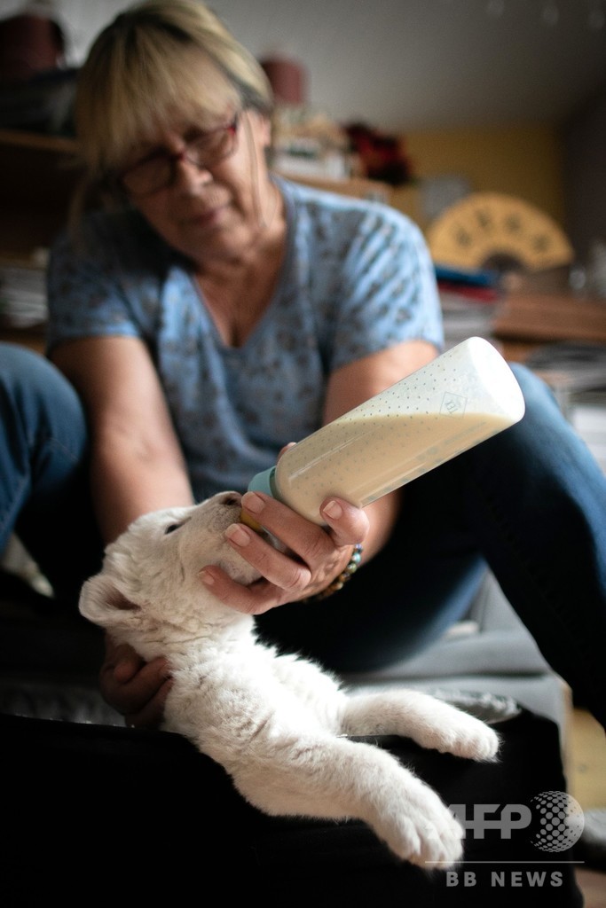 縫いぐるみみたい、ふわふわホワイトライオンの赤ちゃんお披露目 仏