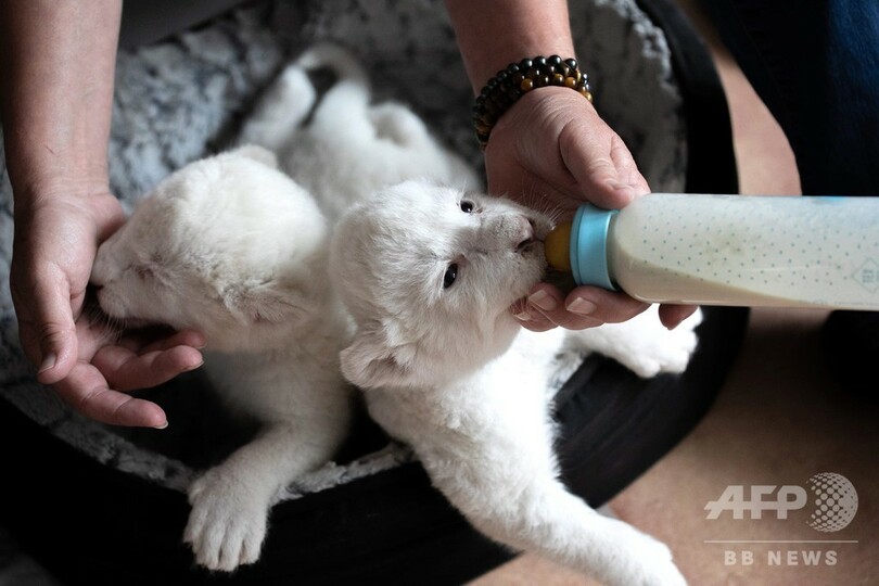 縫いぐるみみたい、ふわふわホワイトライオンの赤ちゃんお披露目 仏