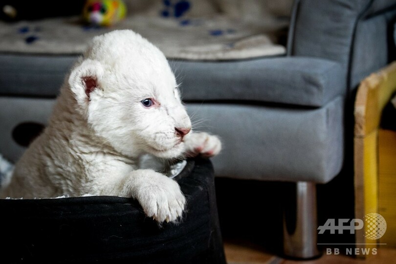 縫いぐるみみたい、ふわふわホワイトライオンの赤ちゃんお披露目 仏