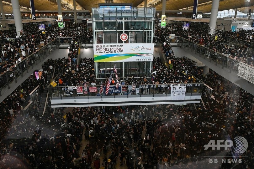 【8月13日 AFP】香港で12日、警察による暴力行為を非難する数千人の民主派デモ隊が香港空港(Hong Kong International Airport)内に集結したことを受け、同空港の発着便がすべて欠航となった。