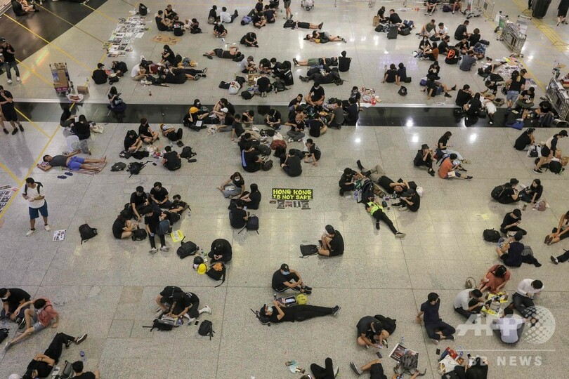 【8月13日 AFP】香港で12日、警察による暴力行為を非難する数千人の民主派デモ隊が香港空港(Hong Kong International Airport)内に集結したことを受け、同空港の発着便がすべて欠航となった。