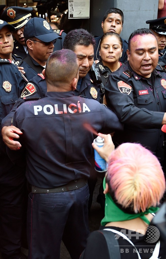警官による少女レイプに抗議デモ、市治安長官に塗料浴びせる メキシコ