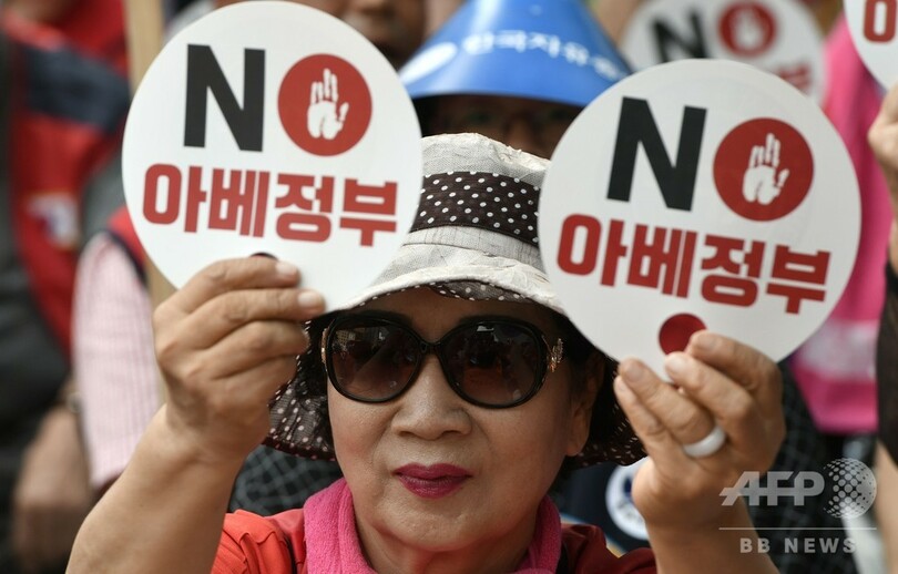ニュース 政治・経済 ソウルで日本政府への抗議デモ 、「ノー・安倍政権」掲げる 2019年8月13日 22:13 発信地:ソウル/韓国 [ 韓国 韓国・北朝鮮 日本 アジア・オセアニア ] このニュースをシェア ‹ › ❮ 3/6 ❯ 韓国の首都ソウルで、「ノー・安倍政権」と書かれた紙を掲げる抗議デモの参加者(2019年8月13日撮影)。(c)Jung Yeon-je / AFP 画像作成中 ! 【8月13日 AFP】韓国の首都ソウルで13日、日本政府に対する抗議集会が開催された。 参加者らは「ノー・安倍政権」と書かれた紙を掲げて抗議した。(c)AFP 政治・経済 一覧へ> メディア・報道関係・法人の方向け 写真・動画 購入のお問合せ>