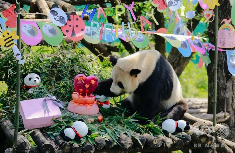 ケーキありがとう! パンダのタオタオ、13歳の誕生日