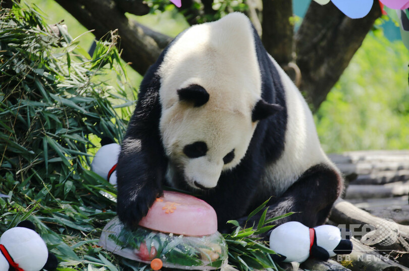 【8月14日 CNS】中国・四川省(Sichuan)広安市(Guang'an)で12日、ジャイアントパンダの淘淘(タオタオ、Tao Tao)の13歳の誕生日と「華鎣山(Huayingshan)ジャイアントパンダ野生復帰訓練基地」の設立5周年の祝賀行事があった。