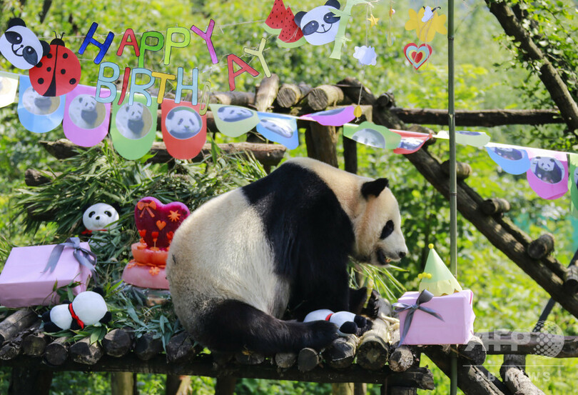 【8月14日 CNS】中国・四川省(Sichuan)広安市(Guang'an)で12日、ジャイアントパンダの淘淘(タオタオ、Tao Tao)の13歳の誕生日と「華鎣山(Huayingshan)ジャイアントパンダ野生復帰訓練基地」の設立5周年の祝賀行事があった。