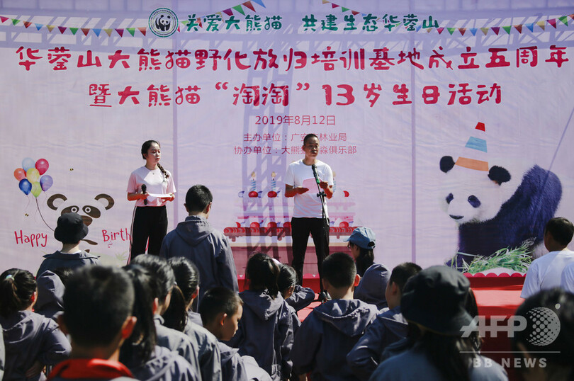 【8月14日 CNS】中国・四川省(Sichuan)広安市(Guang'an)で12日、ジャイアントパンダの淘淘(タオタオ、Tao Tao)の13歳の誕生日と「華鎣山(Huayingshan)ジャイアントパンダ野生復帰訓練基地」の設立5周年の祝賀行事があった。