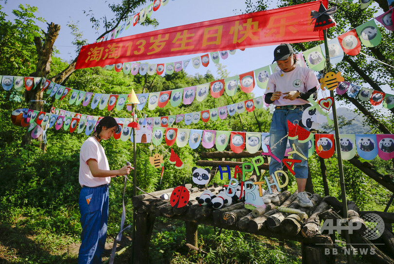 【8月14日 CNS】中国・四川省(Sichuan)広安市(Guang'an)で12日、ジャイアントパンダの淘淘(タオタオ、Tao Tao)の13歳の誕生日と「華鎣山(Huayingshan)ジャイアントパンダ野生復帰訓練基地」の設立5周年の祝賀行事があった。