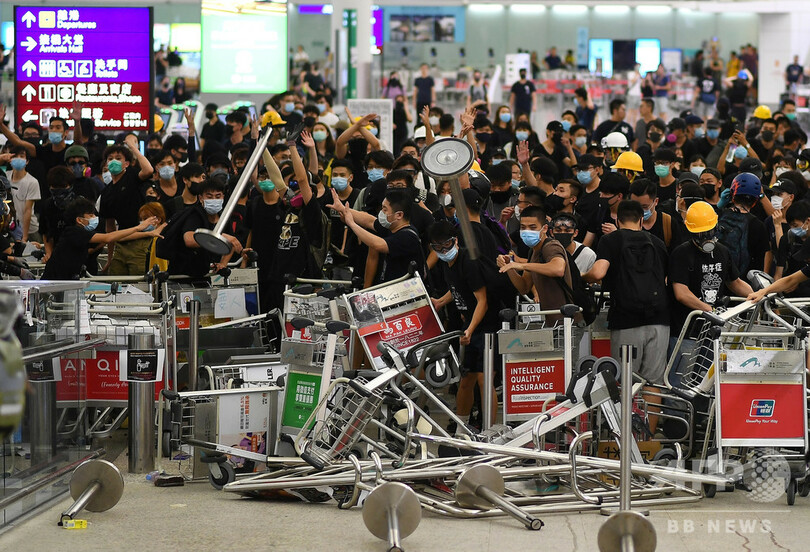 香港空港のデモ隊は「テロリストまがい」、中国政府が非難