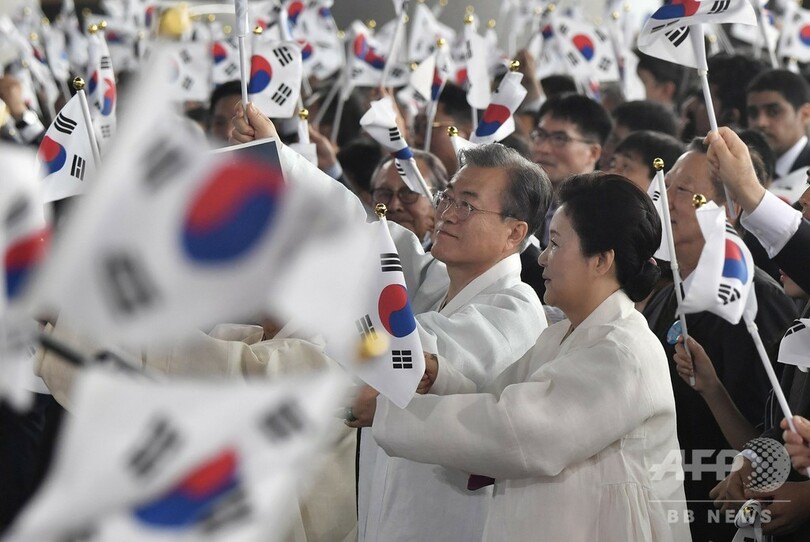 【8月15日 AFP】韓国の文在寅(ムン・ジェイン、Moon Jae-in)大統領は15日、1910年から45年まで続いた日本による統治からの解放を記念する「光復節(National Liberation Day)」の式典で演説し、日本政府が対話の道を選ぶなら韓国は「手を取る」と述べた。日韓関係が過去最悪にまで冷え込む中、日本との融和姿勢を打ち出した。