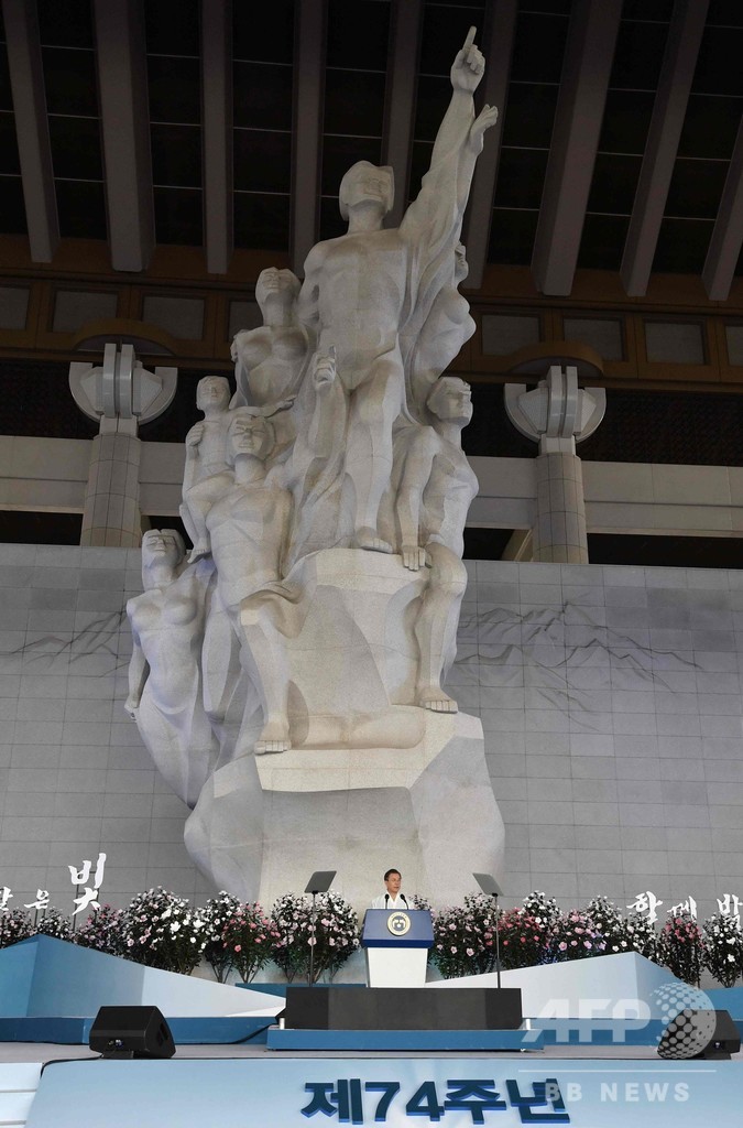 【8月15日 AFP】韓国の文在寅(ムン・ジェイン、Moon Jae-in)大統領は15日、1910年から45年まで続いた日本による統治からの解放を記念する「光復節(National Liberation Day)」の式典で演説し、日本政府が対話の道を選ぶなら韓国は「手を取る」と述べた。日韓関係が過去最悪にまで冷え込む中、日本との融和姿勢を打ち出した。
