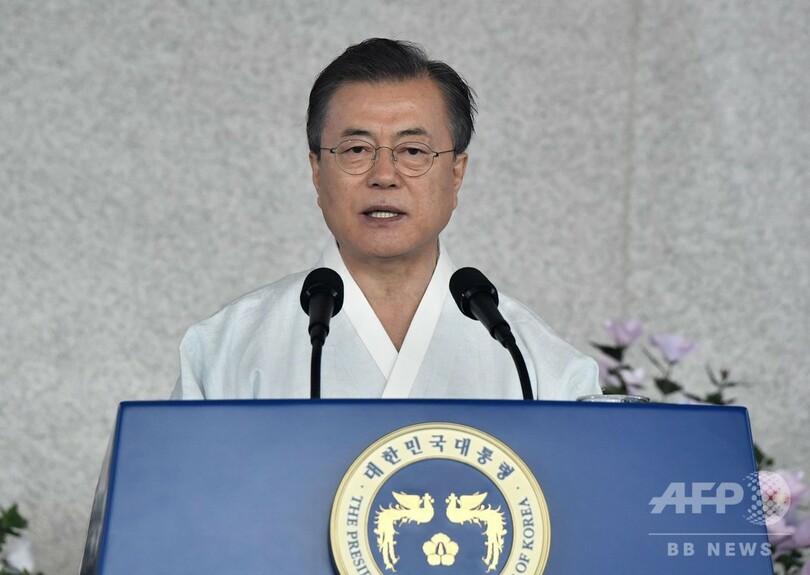 【8月15日 AFP】韓国の文在寅(ムン・ジェイン、Moon Jae-in)大統領は15日、1910年から45年まで続いた日本による統治からの解放を記念する「光復節(National Liberation Day)」の式典で演説し、日本政府が対話の道を選ぶなら韓国は「手を取る」と述べた。日韓関係が過去最悪にまで冷え込む中、日本との融和姿勢を打ち出した。
