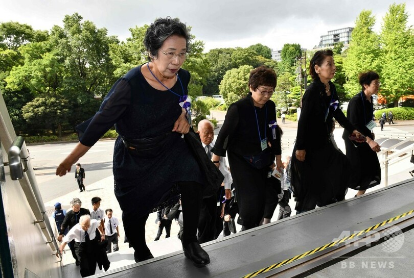 これに先立ち、安倍晋三(Shinzo Abe)首相は式辞で、戦没者に「衷心より、敬意と感謝の念」をささげ、過去の式辞と同じ「戦争の惨禍を、二度と繰り返さない」とした上で、「この誓いは、令和の時代においても決して変わることはありません」と述べた。(c)AFP