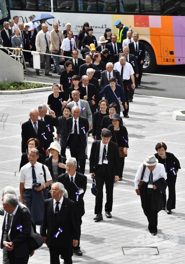 【8月15日 AFP】終戦記念日の15日、都内の日本武道館で全国戦没者追悼式が開かれた。天皇陛下は5月の即位後初めて出席し、過去の戦争への「深い反省」に言及したお言葉を述べられた。