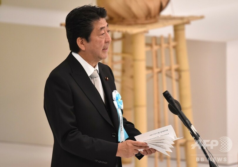 これに先立ち、安倍晋三(Shinzo Abe)首相は式辞で、戦没者に「衷心より、敬意と感謝の念」をささげ、過去の式辞と同じ「戦争の惨禍を、二度と繰り返さない」とした上で、「この誓いは、令和の時代においても決して変わることはありません」と述べた。(c)AFP