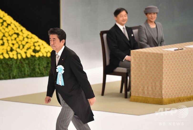 【8月15日 AFP】終戦記念日の15日、都内の日本武道館で全国戦没者追悼式が開かれた。天皇陛下は5月の即位後初めて出席し、過去の戦争への「深い反省」に言及したお言葉を述べられた。