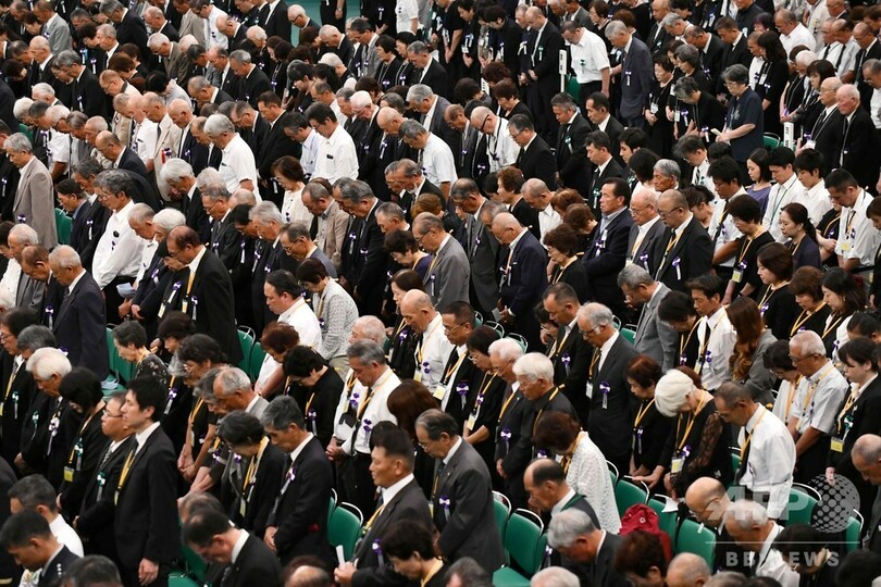 【8月15日 AFP】終戦記念日の15日、都内の日本武道館で全国戦没者追悼式が開かれた。天皇陛下は5月の即位後初めて出席し、過去の戦争への「深い反省」に言及したお言葉を述べられた。