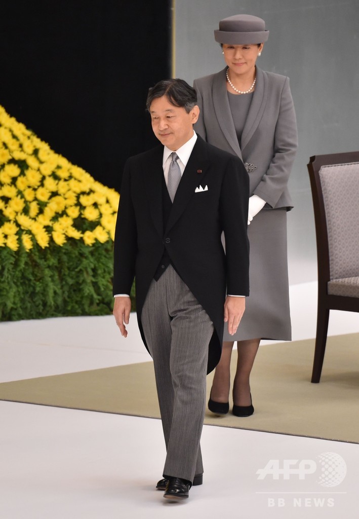 【8月15日 AFP】終戦記念日の15日、都内の日本武道館で全国戦没者追悼式が開かれた。天皇陛下は5月の即位後初めて出席し、過去の戦争への「深い反省」に言及したお言葉を述べられた。