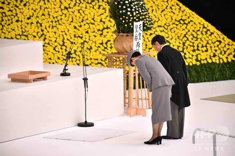 【8月15日 AFP】終戦記念日の15日、都内の日本武道館で全国戦没者追悼式が開かれた。天皇陛下は5月の即位後初めて出席し、過去の戦争への「深い反省」に言及したお言葉を述べられた。