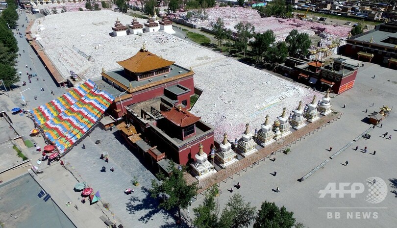 【8月17日 CNS】中国・青海省(Qinghai)玉樹チベット族自治州(Yushu Tibetan Autonomous Prefecture)新寨村(Xinzhai)には、チベット仏教の経文を石に彫り、高く積み上げた「マニ石経城」を見学しようと多くの観光客が訪れる。