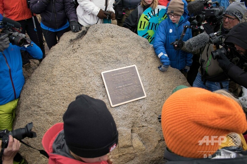 気候変動で失われたアイスランド初の氷河、「未来への手紙」の銘板を設置