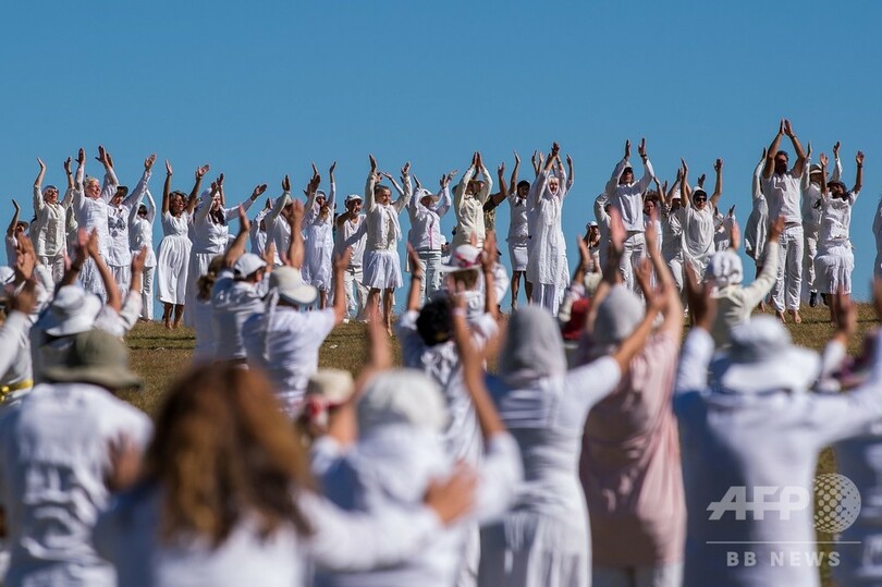 【8月20日 AFP】緑豊かなブルガリア・リラ(Rila)山脈の湖のそばで19日、「霊的な新年」を祝うため白ずくめの数千人が集まり、輪になって瞑想的なダンスを踊った。