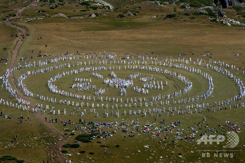【8月20日 AFP】緑豊かなブルガリア・リラ(Rila)山脈の湖のそばで19日、「霊的な新年」を祝うため白ずくめの数千人が集まり、輪になって瞑想的なダンスを踊った。