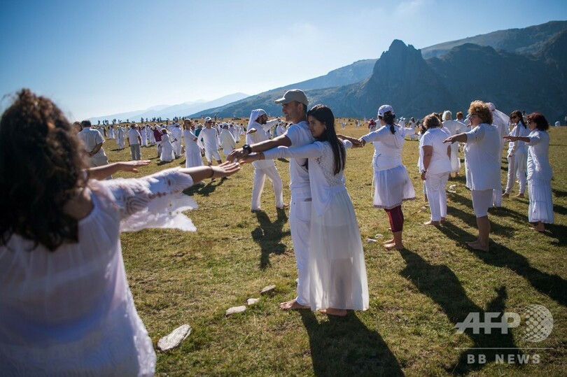 【8月20日 AFP】緑豊かなブルガリア・リラ(Rila)山脈の湖のそばで19日、「霊的な新年」を祝うため白ずくめの数千人が集まり、輪になって瞑想的なダンスを踊った。
