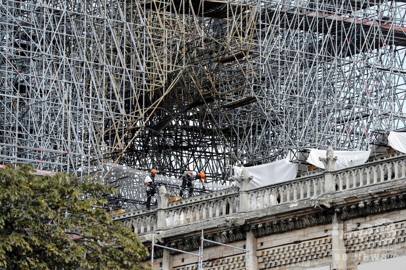 【8月20日 AFP】今年4月に大規模火災に見舞われたフランス・パリのノートルダム大聖堂(Notre Dame Cathedral)に19日、防護マスクを着用した建設作業員らが再び姿を見せた。これまでの3週間は、鉛汚染の懸念により作業が中断されていた。