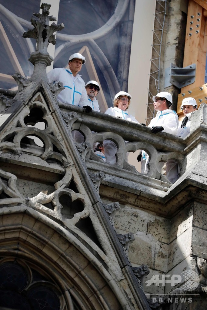 同日にはミュリエル・ペニコ(Muriel Penicaud)労相が、白色の防護服を着用して焼け焦げた大聖堂を視察。また現場には作業員らが再び入り、建物の調査に当たった。