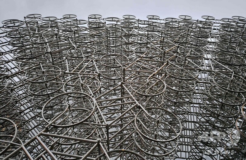 【8月21日 AFP】中国の現代芸術家、艾未未(アイ・ウェイウェイ、Ai Weiwei)氏の作品「Forever Cycles」。1000台を超えるステンレススチールの自転車を使った作品で、21日からブラジル・リオデジャネイロ(Rio de Janeiro)で開催される個展で展示される。(c)AFP