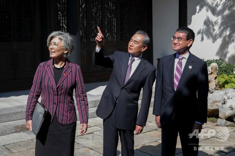 【8月21日 AFP】河野太郎(Taro Kono)外相は21日、中国・北京郊外の古北水鎮で中国の王毅(Wang Yi)外相、韓国の康京和(カン・ギョンファ、Kang Kyung-Wha)外相との日中韓外相会談を行った。日中韓の外相会談は今回で9度目。(c)AFP