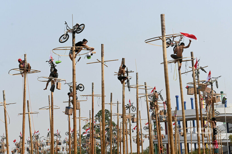 ニュース ライフ 今日の1枚 【今日の1枚】「放すものか」独立記念の棒登り 2019年8月30日 12:15 発信地:スミニャック/インドネシア [ インドネシア アジア・オセアニア ] このニュースをシェア ‹ › ❮ 2/3 ❯ オランダの支配から独立を祝う74回目の記念日に、インドネシア・ジャカルタの浜辺で開かれた棒登り競争「パンジャット・ピナン」で、油で滑りやすい棒を登る参加者たち(2019年8月17日撮影)。(c)AFP/GOH CHAI HIN 画像作成中 ! 【8月30日 AFP】インドネシアのリゾート地、バリ(Bali)島のスミニャック(Seminyak)ビーチで、オランダの支配から同国の独立を祝う74回目の記念日に、棒登り競争が開かれた。賞品を目指し、油で滑りやすい棒を登る参加者たち。(c)AFP ライフ 一覧へ> メディア・報道関係・法人の方向け 写真・動画 購入のお問合せ>