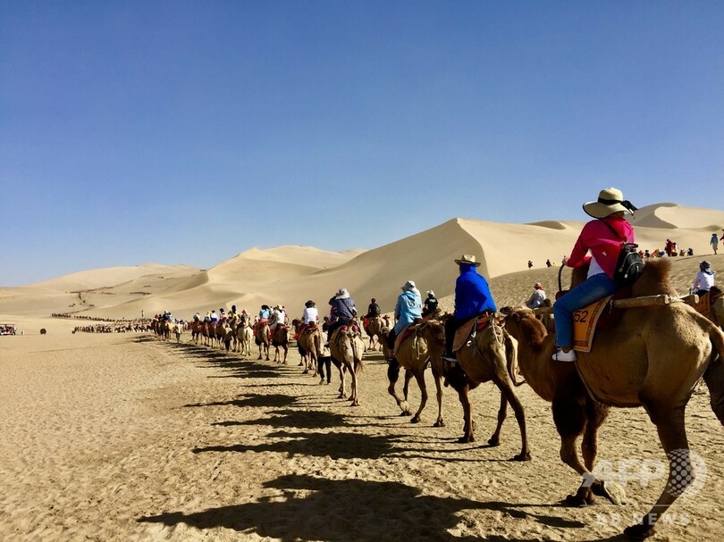 「敦煌古城」マーケティング担当の楊翠蓮(Yang Cuilian)氏によると、今年はすでに22万人以上の観光客を迎え、前年の同時期より17.6%増えた。古城の観光だけでなく、ラクダに乗ったりアーチェリーをしたりするなどの体験ができ、観光客のさまざまなニーズにこたえていることが人気の要因という。(c)CNS/JCM/AFPBB News