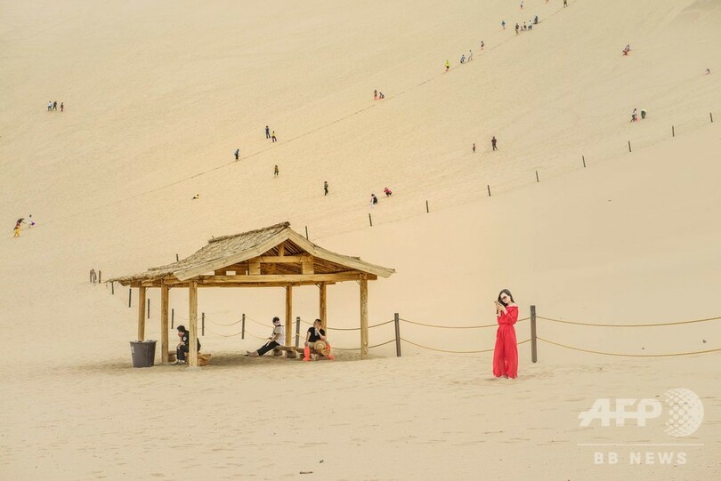 「敦煌古城」マーケティング担当の楊翠蓮(Yang Cuilian)氏によると、今年はすでに22万人以上の観光客を迎え、前年の同時期より17.6%増えた。古城の観光だけでなく、ラクダに乗ったりアーチェリーをしたりするなどの体験ができ、観光客のさまざまなニーズにこたえていることが人気の要因という。(c)CNS/JCM/AFPBB News