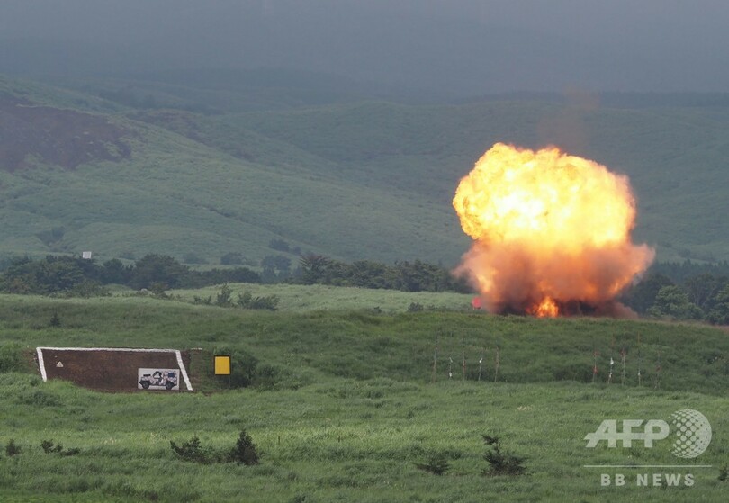 【8月22日 AFP】陸上自衛隊は22日、静岡県御殿場市の東富士演習場で「富士総合火力演習」の予行演習を実施した。富士山東麓にある演習場での予行演習には自衛隊の戦車や装甲車、ヘリコプター、水陸両用車などが参加した。(c)AFP