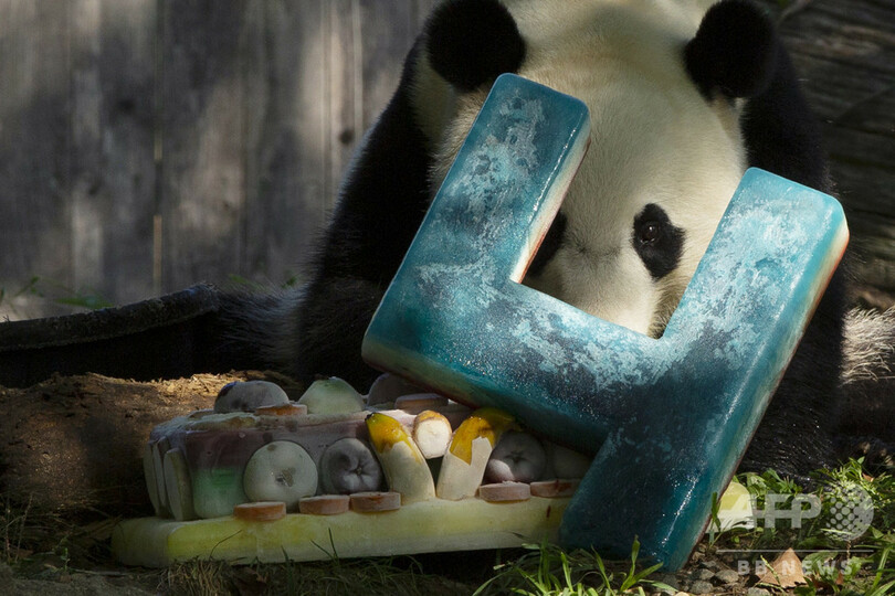 【8月23日 AFP】米首都ワシントンのスミソニアン国立動物園(Smithsonian National Zoo)で22日、ジャイアントパンダの「ベイベイ(Bei Bei)、中国名:貝貝」が4歳の誕生日を迎えた。ベイベイには、果物などを凍らせたバースデーケーキが贈られた。(c)AFP
