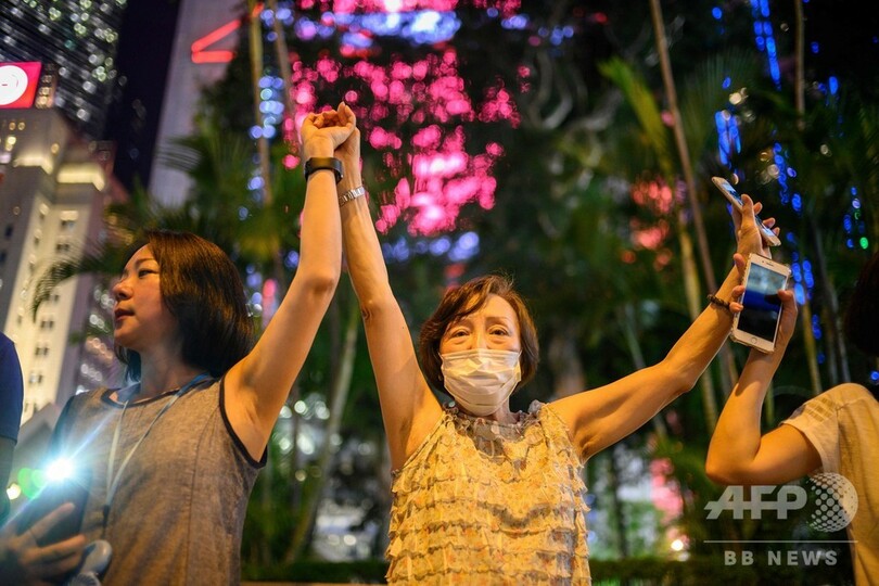 【8月24日 AFP】民主派の抗議行動が続く香港で23日夜、数千人のデモ隊が市内各地で手をつなぎライトを掲げ、30年前にバルト3国で行われた旧ソ連支配に対する民主派デモ「バルトの道(Baltic Way)」をきらびやかに再現した。