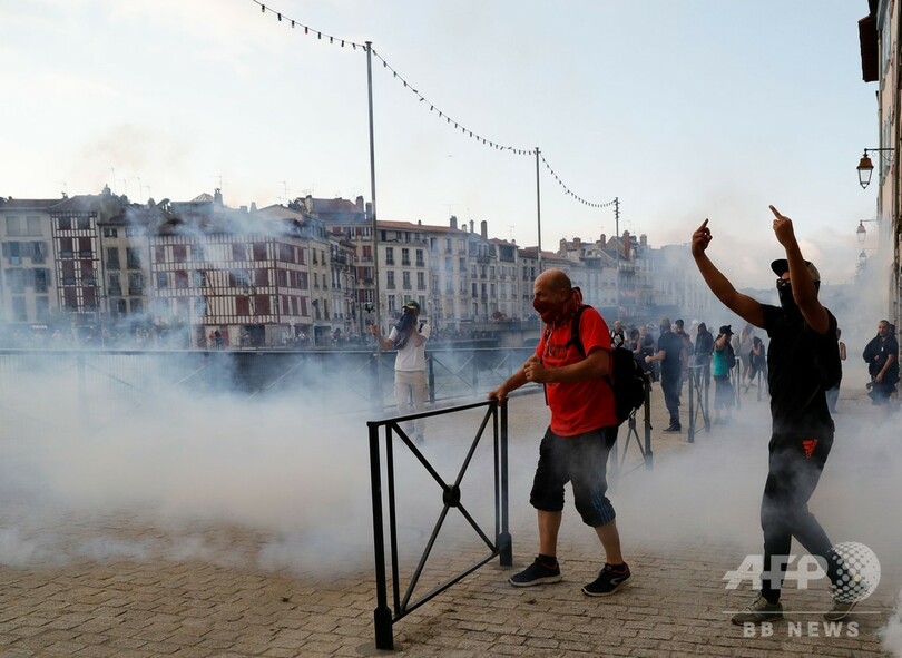 しかし、ビアリッツから数キロしか離れていないバイヨンヌ(Bayonne)では、資本主義に反対するシュプレヒコールを叫びながらデモ行進した数百人が予定のルートを外れて市中心部に向かおうとしたため、大量に動員されていた警察官がバリケードを構築。突破しようとするデモ隊と1時間以上のにらみ合いとなったが、最終的に警察は催涙ガスと放水銃を使用してデモ隊を排除した。当局はこの騒ぎで拘束した人の数を明らかにしていない。