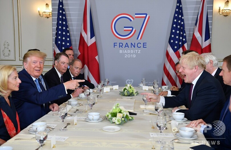 【8月25日 AFP】(更新)ドナルド・トランプ(Donald Trump)米大統領とボリス・ジョンソン(Boris Johnson)英首相による首脳会談が25日、先進7か国(G7)首脳会議(サミット)の開催地であるフランス南西ビアリッツ(Biarritz)で行われた。