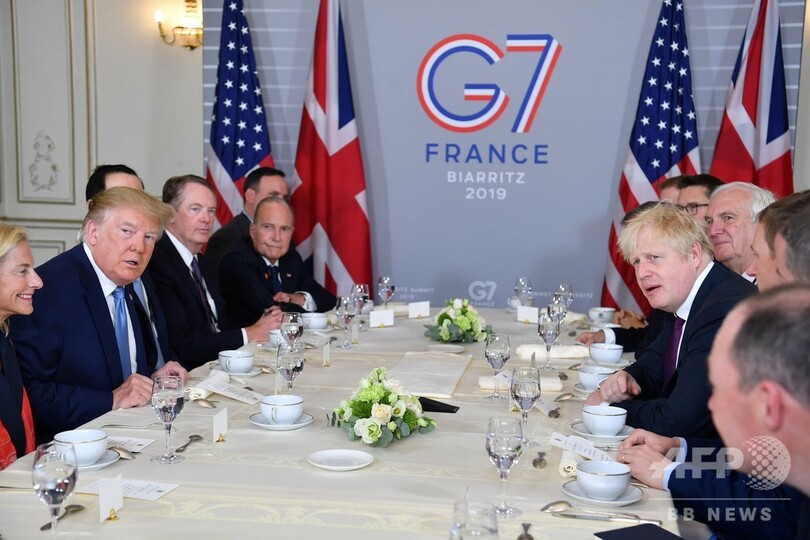 【8月25日 AFP】(更新)ドナルド・トランプ(Donald Trump)米大統領とボリス・ジョンソン(Boris Johnson)英首相による首脳会談が25日、先進7か国(G7)首脳会議(サミット)の開催地であるフランス南西ビアリッツ(Biarritz)で行われた。