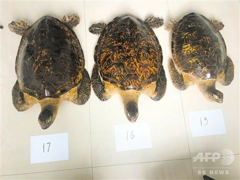 同自治区公安庁によると、5月31日から8月5日までのわずか2か月余りの間で、絶滅危惧種およびその製品の密輸入の取り締まり件数は78件に達した。密輸入された商品は、象牙8.825トン、生きたセンザンコウ70匹、サイの角製品10.1キロ、干したヨウジウオ93.1キロなどで、総額18億5000万元(約274億円)に上った。(c)CNS-南寧晩報/JCM/AFPBB News